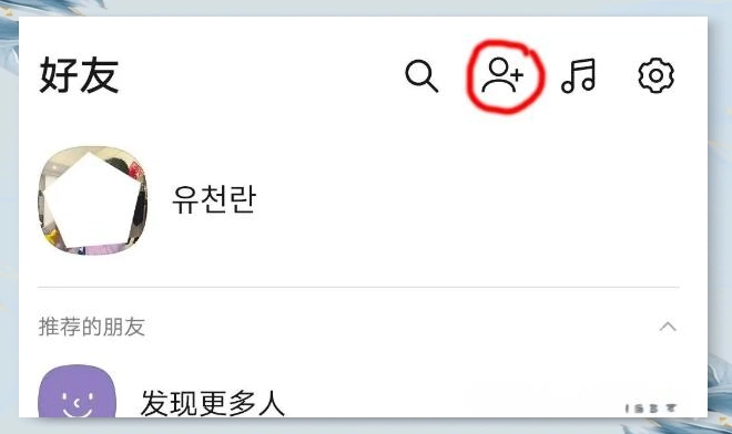 4、点击屏幕右上角带有红色圈圈标记的位置,就能开启添加好友的流程。之后,你可以依据自身需求,挑选不同的方式添加老师或朋友,和他们分享你的生活点滴。