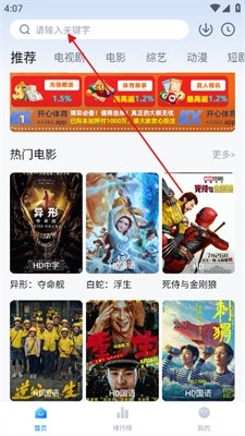 进入首页点击上方的搜索框。