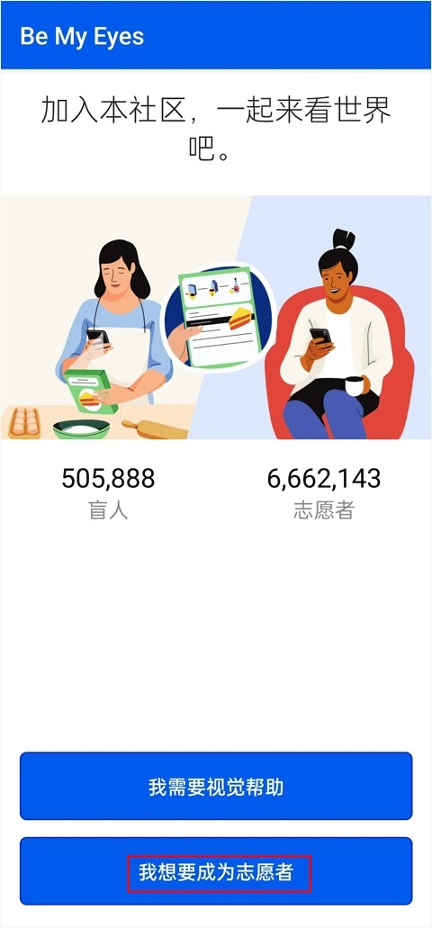 6、专属网络社区:这是一个为视力障碍群体搭建的网络社区,借助软件就能与爱心人士建立连接,从而获得视频方面的支持。