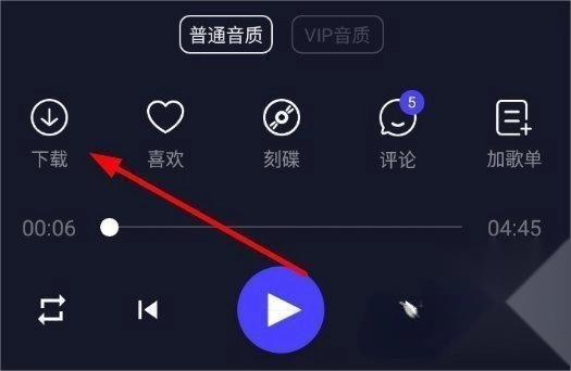 2、接着在歌曲播放界面,我们点击“”按钮。
