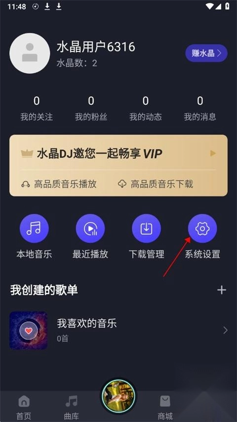 1、进入水晶DJ ,点击下方“我的”页面;