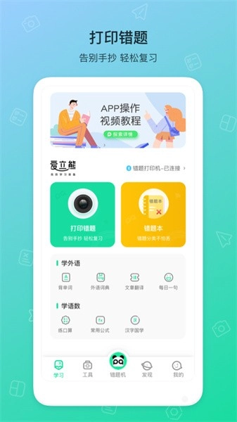 错题机h2是荣耀与爱立熊携手打造的高效学习工具,借助蓝牙连接迷你打印机,可快速完成错题的记录与打印。该工具不仅能协助学生梳理各科错题,还支持将题目分类存储至云端,防止纸质资料遗失。用户能够自主编辑题干、错解及正解,期末时一键即可打印成册;系统会依据记忆曲线自动生成每日复习试卷,仅需15分钟就能完成查漏补缺。无论是汉字笔顺查询、外语翻译,还是文档处理、照片打印,都能轻松应对,有需要的朋友不妨尝试一下。