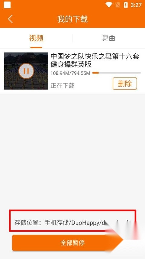 4、点击进入后,就能查看正在播放的视频以及视频的存储位置。