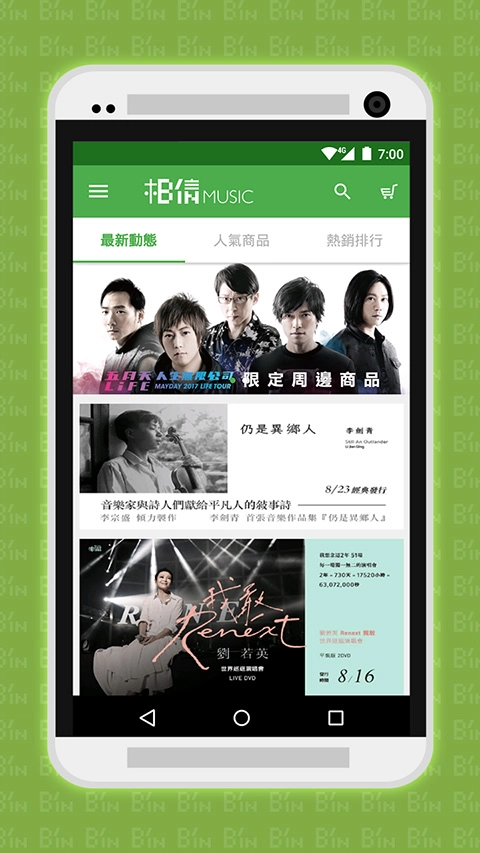 2、歌手、专辑、周边、影音即时分享: