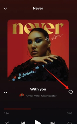 只需轻点音乐就能开始播放,在播放界面点击红心,就能把它收藏到个人歌单里。