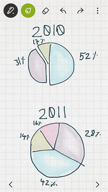 1、6种笔触选择:包含圆珠笔、铅笔、马克笔、毛笔、荧光笔和橡皮,每种笔触的粗细与颜色均可按需调整。
