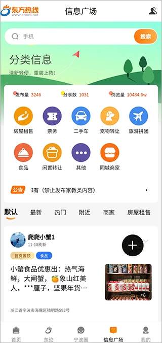 东方热线是一款面向宁波本地用户的生活服务类软件,致力于为用户提供多元化的内容和便捷的服务体验。用户打开软件后,可使用发帖、回帖、编辑、拍照上传、分享、查看附近动态、添加好友等功能,既能快速获取各类资讯,也能深入了解本地热点话题。遇到感兴趣的内容时,还能参与讨论,与其他网友互动交流。