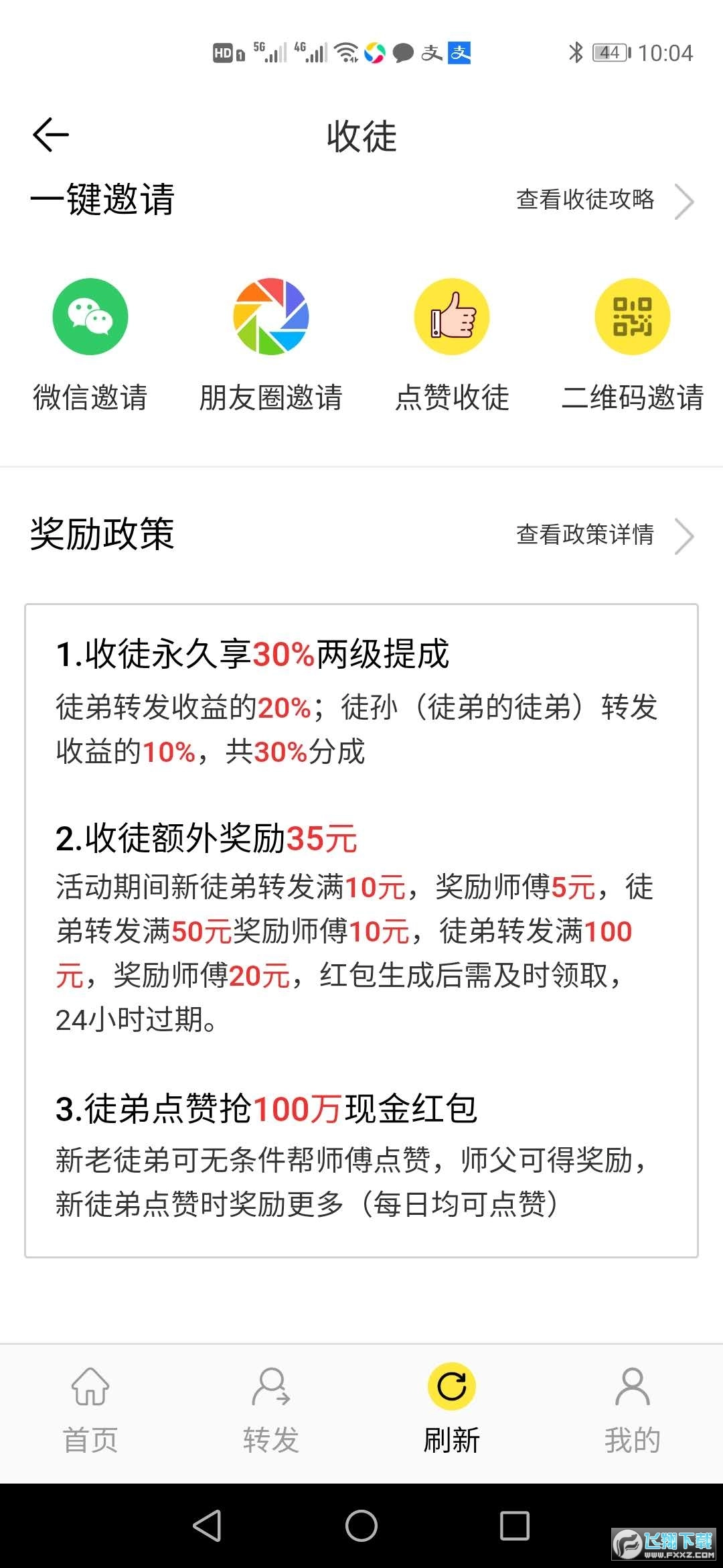 2、成功收徒可获得35元平台奖励金,还能额外享受徒弟20%以及徒孙10%的转发收益提成;