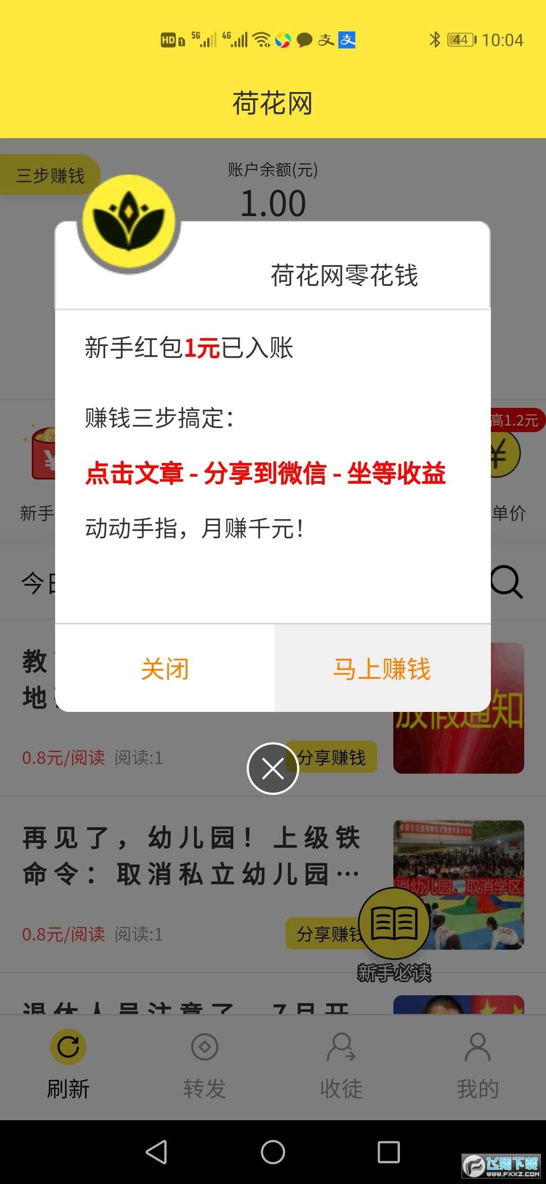 大家只需把荷花网上的文章转发到朋友圈或者群里,一旦你的朋友点击查看了你分享的文章,你就能获得现金红包奖励。这里转发文章的单价特别高,每个点击能赚0.8到1.2元。另外,荷花网旗下还有玉兔网、田鼠网、贝分网、满分网等赚钱平台,这些都是比较可靠的。