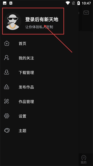 2、点击左上角的头像进入个人菜单,会显示【登录后有新天地】的提示,菜单里包含【我的关注】【管理】等功能。