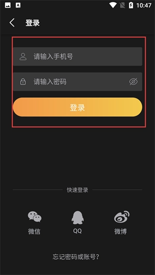 4、切换到账号密码登录界面后,要按顺序填写【账号】【密码】,确认信息准确无误后点击【登录】按钮,就能完成账号密码登录的流程。