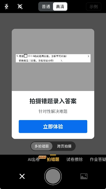 3、扫描试卷:点击“拍错题”功能启动扫描,扫描时尽量让试卷铺满整个屏幕,这样能得到更清晰的扫描效果。