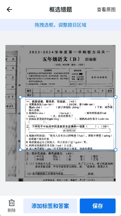 5、框选错题:在扫描后的试卷页面上,利用系统提供的框选工具,把试卷里的每一道错题逐个框选标记出来。