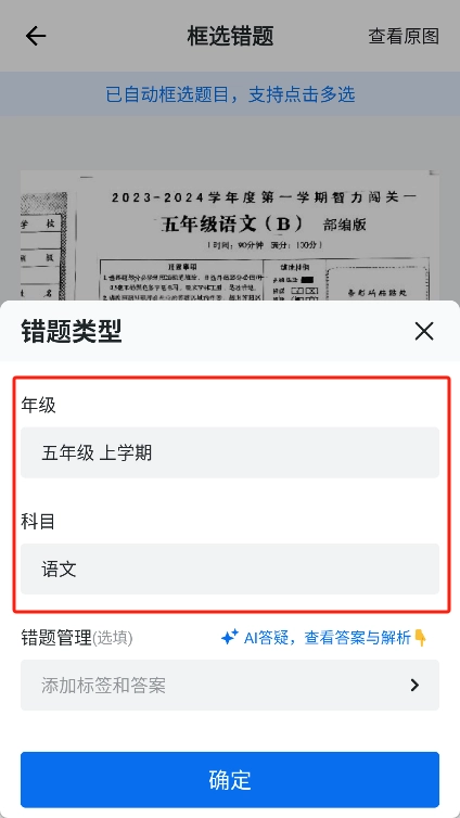 - 错题框选: