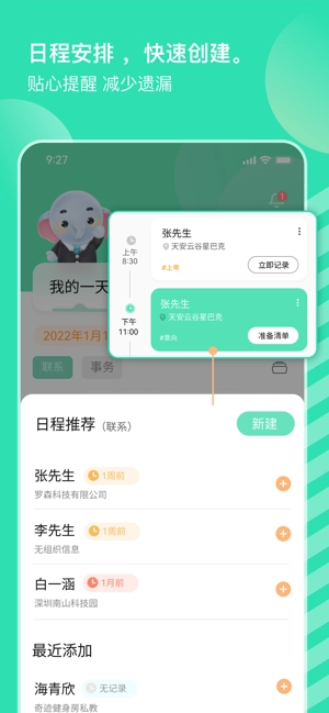 - 临时变更日程时,关联客户自动同步更新提醒内容。