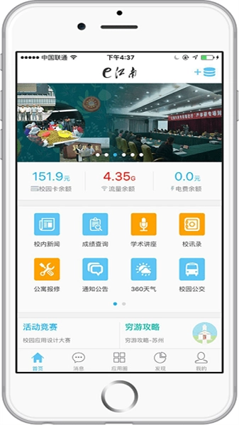 这个软件整合了校内新闻、成绩查询、学术讲座、校训录等功能,能让你不受时间地点限制,便捷获取各类校园相关信息。