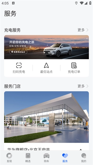 4、服务版块可以查询周围的充电站、服务门店