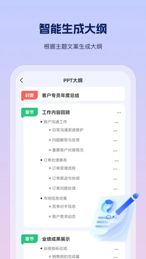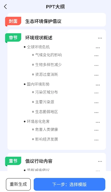 - PPT大纲: 输入主题文案,获取并编辑大纲。