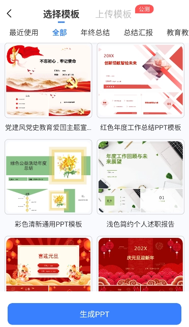 - 上传模板:对存储的PPT文件进行识别并上传,以此获取模板。