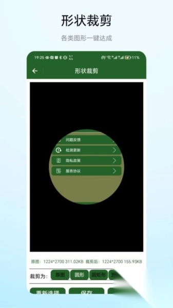 1、丰富的裁剪功能:裁剪图形时可选择多种尺寸与形状,能适配各类编辑场景的需求。