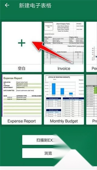 3、打开“新建电子表格”的操作界面,点击界面上的“+”符号按钮。
