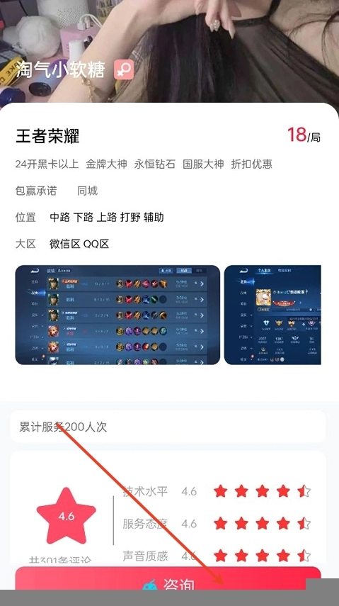 3、点击下方的【咨询】即可进行沟通,下单即可享受陪玩服务。