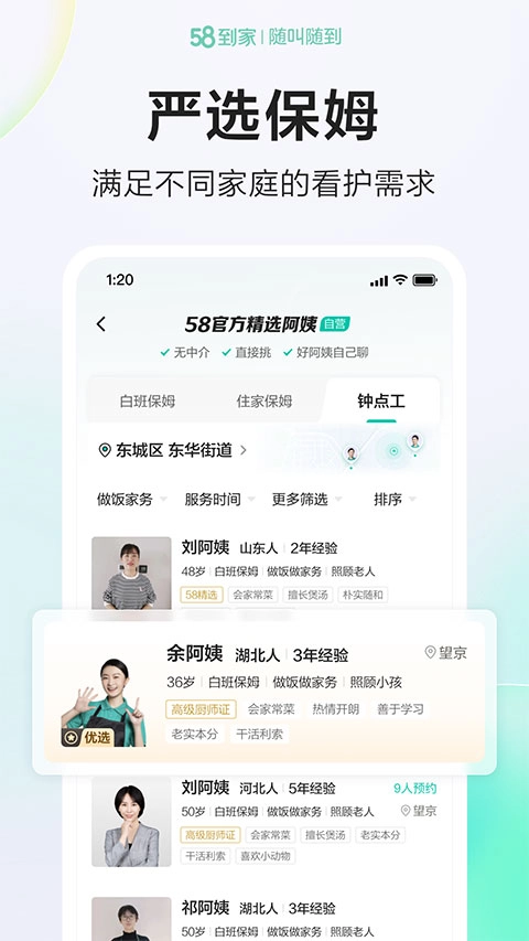 1、为满足用户需求,您无需出门就能面试阿姨,全程无接触,让您更安心;