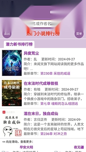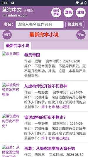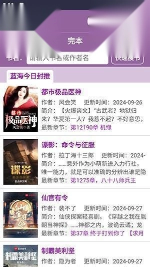 1、在蓝海搜书首页点击你喜欢的小说,点击图片和标题都能够进入