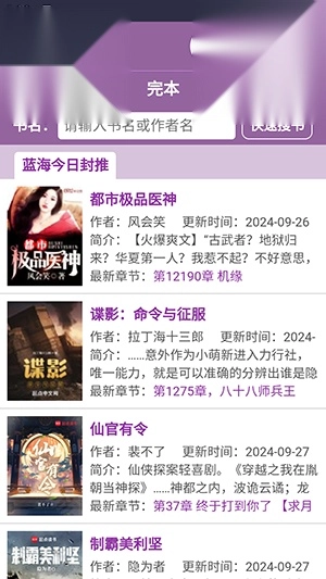 蓝海搜书书屋是一款实用的阅读软件,拥有丰富的小说资源,覆盖的类型十分广泛,用户能够借助分类和关键词搜索来查找书籍,所有小说均获得授权,可安心阅读,更新速度也颇为迅速,用户可以把喜爱的书籍添加到书架便于管理,软件界面简洁、操作简便,感兴趣的朋友欢迎使用。