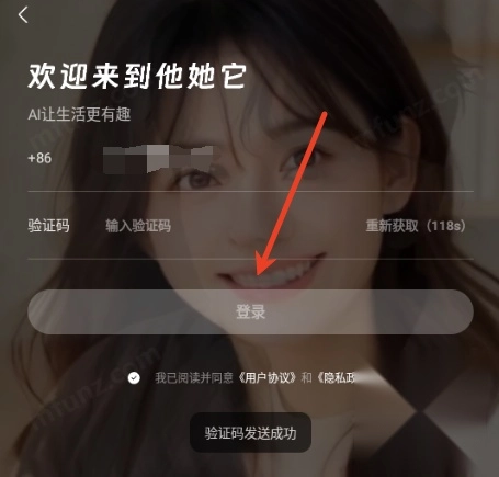 1、打开他她它阅读协议,点击同意并继续