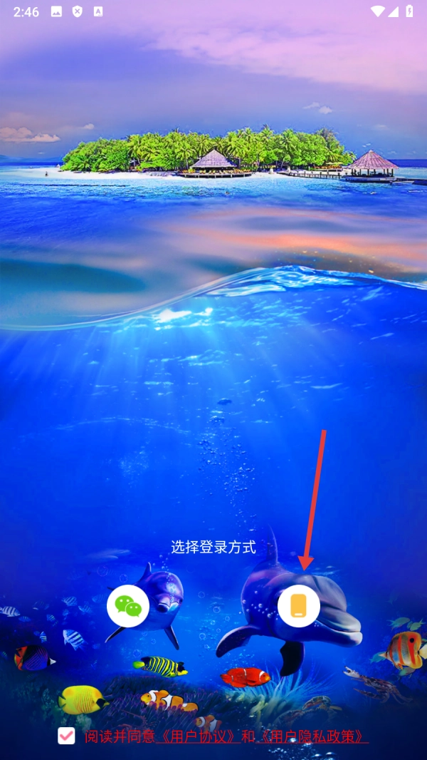 1、在登录选择界面,点击【登录图标】,即可进入登录页面。