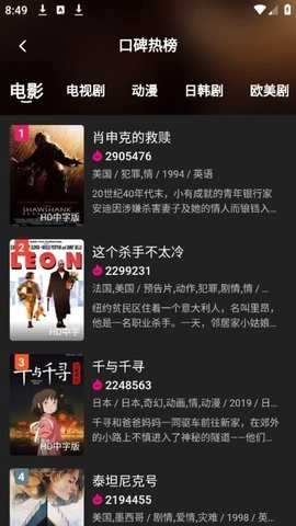 1.覆盖电影、电视剧、动漫、综艺等各类内容,能满足不同用户的观影偏好。