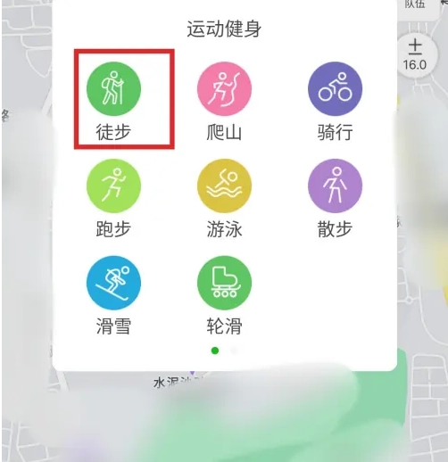3.选择“运动类型”图标,在弹出界面选择“徒步”