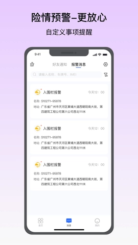 在这儿是一款家庭监护防护软件,设计了一系列功能来保障您家庭的车辆、孩童、老人与宠物的安全。其中有一项围栏设置功能,您能够根据实际需求设置安全围栏,一旦有人或物品脱离围栏范围,您会立刻收到实时预警,以此保障他们的安全。