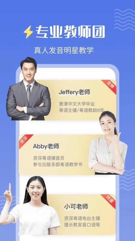 3、聆听专业老师的地道发音,轻松在线学习日常粤语口语,用粤语进行对话交流。