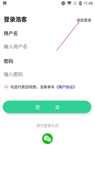 3、登录页支持用户名密码登录,也可点击【动态登录】切换为验证码登录方式,此外还能选择微信登录。