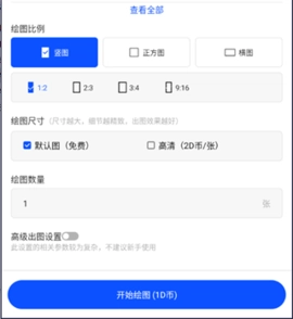 3、接着选择好所需的绘图比例、尺寸和数量,点击下方的【开始绘图】选项,