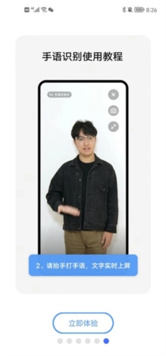 2、抬手打手语,文字实时显示;