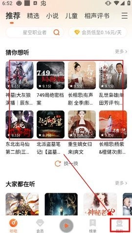 2、接着,进入首页后就能看到各类丰富的书籍,任意点击一本都可以直接收听。