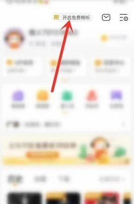 2.进到我的页面,选择顶部“开启畅听”图标。