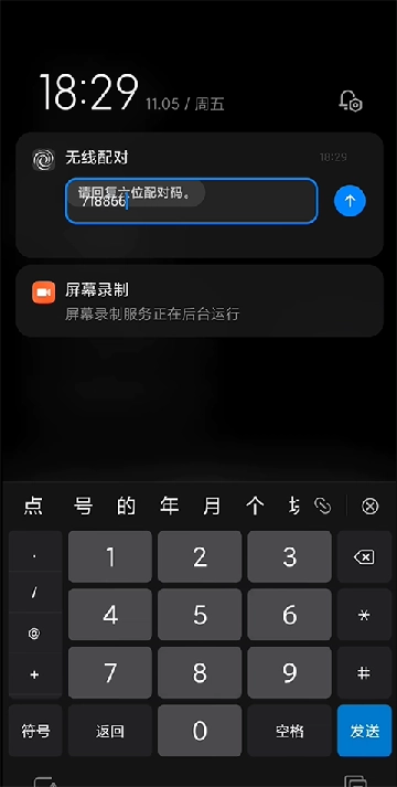 6、在无线配对中输入六位配对码。