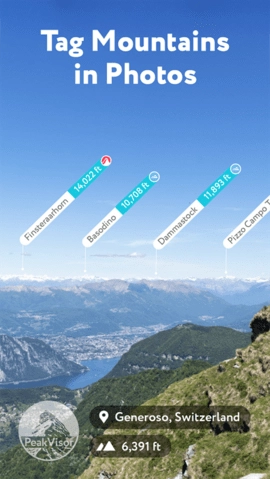 查看详细信息:在相机实景里找到你想了解的山峰,点击对应的标签,PeakVisor就会为你呈现这座山峰的详细数据。