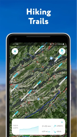 3D地图功能可提供高精度的地形模型,帮助用户直观了解山区的真实地形状况。该功能不仅便于用户轻松掌握周边环境,还能助力规划最优远足路线。应用内整合了全球范围内的远足路径与步道信息,用户可根据自身需求挑选合适路线,评估步行距离,获取纵剖面数据及预估耗时。所有功能均支持离线使用,无论用户身处何地,都能随时获取所需信息。
