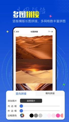 PicLab图片编辑器是一款集拼图与美化于一体的多功能应用。它不仅提供多种常用角度的一键旋转选项,还支持自由旋转图片,最大可旋转270度,让您能灵活调整图片角度。该应用支持多张图片截图与台词字幕的拼接,方便您分享经典语录;您还可以自定义文字或图片水印的样式,让照片更具个性化。此外,PicLab具备宫格切图功能,可自由调整比例缩放和像素参数,使裁剪操作更加简单高效。在拼接方面,它提供了多种网格数量、背景颜色和边框样式的选择,让您的拼图创作更加自由随心。同时,PicLab还设有台词拼接功能,包含九宫格、六宫格等常见宫格的一键切图功能,您也可以将照片一键分割成多种方块,实现更具创意的拼接效果。