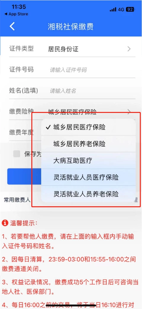 -点击“社保缴费”选项,接着选择对应的缴费城市、缴费年度,并勾选“城乡居民养老保险”这一险种,随后点击“查询”按钮,就能查看用户是否具备应缴资格。