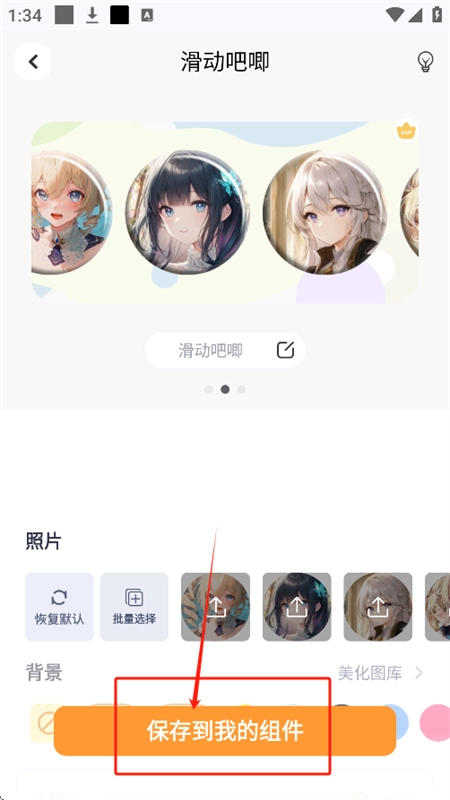 3、挑选您心仪的组件进入,直接保存至“我的组件”就行,还能自定义背景、名称等各项设置。