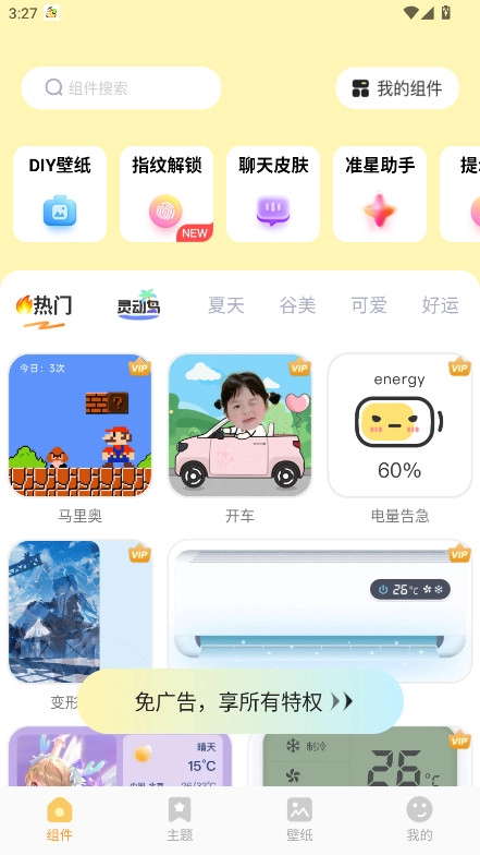 海量精选主题与小组件模板,一键美化,瞬间点亮你的屏幕,告别单调。