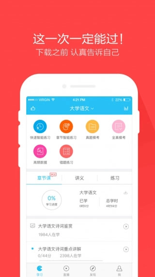 这款软件视频课程,专为全国2018年自学考试的用户打造,支持离线学习,使用起来更便捷!