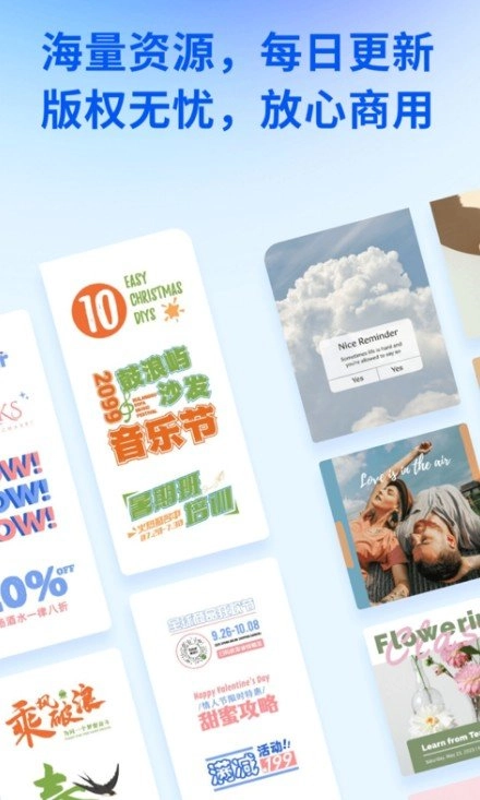 这款软件拥有海量设计模板,众多设计师会在这里分享原创作品,丰富的内容可供自由挑选。你能在其中体验到别具一格的功能,还能快速处理各类图片,一键添加多样特效,更有丰富的小工具可供使用。无论你是对设计有需求却不擅长设计的自媒体、电商或市场营销从业者,还是希望提升工作效率的专业设计师,都能借助这款软件为设计工作增添助力。