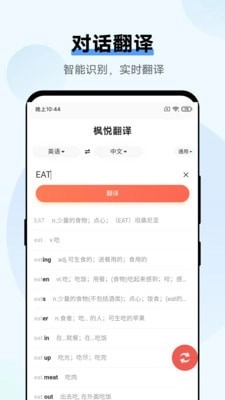 1、文本翻译:可实现文本翻译功能,并支持词典释义、读音及例句的查询。